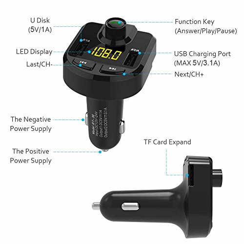 High Quality Sound - Adapting professional-grade high-performance Bluetooth module, bulit-in MP3/WMA decoder chip could automatically detect and play the music files in TF card/U-disk, fire into the car stereo via wireless FM.