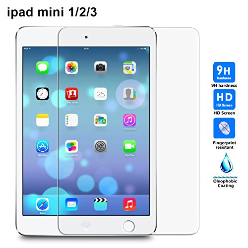Screen Protector for iPad Mini 1 2 3 (2 packs), Jusney 0.33mm Ultra Thin 9H Hard Crystal Clear Tempered Glass High Response 3D Touch for Apple iPad Mini1 / Mini2 / Mini3