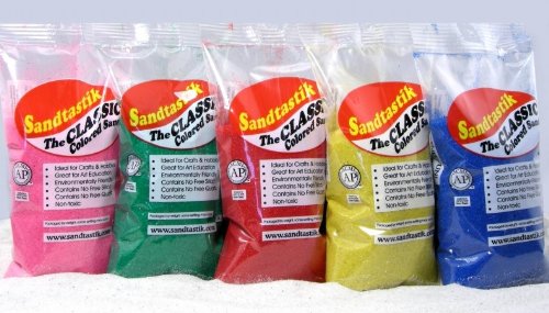 Studio : Sandtastik Publisher : Sandtastik Binding : Toy Product Description Sandtastik Classic Colored Sand 1 lb (454 g). Fine, sparkling colored sand to sprinkle, layer, and design your keepsakes and wondrous creations. An inspiring spectrum of classic bright and light hues of colored sand to accessorize arts and crafts projects, home decor, unity sand ceremony for weddings, vase filler, terrariums and candle arrangements. Design Tip: Sandtastik Classic Colored Sand measures at 1 lb (454 g) = 1.5 cups. 0