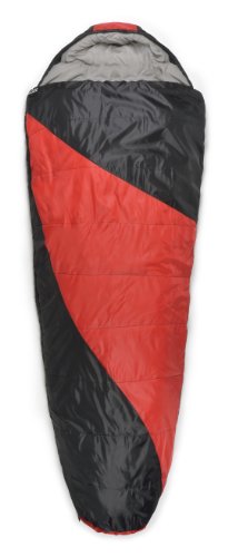 Studio : Trailside Publisher : Trailside Binding : Misc. Product Description 2 layers of Insufil 1 Polyester hollow fiber 190T Polyester Shell and fiberproof poly/cotton lining Full Length, good quality #5 Nylon coil 2 way zipper Zipper-length insulated draft tubes Rating: 19F (-7C) Size: 87 x 33 x 22 (221 x 84 x 56 cm) Shape: Mummy Construction: 2 layers Outer Shell: Polyester Tafetta Lining: Poly/Cotton Filling: 2 lbs (900g) Insufil 1 Zipper: #5 YKK 2-way Stuff Sack: Standard Total Weight: 4.1 lbs (1.9 kg) Shell Color: Black/Dark Red Uncompressed pack size: 15 x 9" 0
