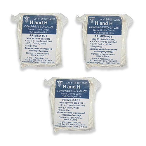 Studio : H and H Associates Publisher : H and H Associates Binding : Health and Beauty Product Description First responders rely on quality gauze for every emergency situation and the HH PriMed Gauze is the must-have product for any trauma or first aid kit. HH PriMed Gauze takes care of moderate to severe wounds involving heavy blood loss. Made of high quality cotton for maximum absorption and stability, HH PriMed Gauze is vacuum packed small for easy storage yet expands to cover large wound areas. It is the perfect companion to a compression bandage to stop severe blood loss and save lives. It is sterile, and can be used for wound packing as well. The HH PriMed Compressed Gauze is standard issue in the following U.S. military kits: MES JAPAN SUST-MTI (UAC 1372) ASL-HEAVY BRIGADE C (UAC 1374) MES KOREA SUSTAINMENT (UAC 1378) MES COMBAT LIFESAVE (UAC 245A) MES COMBAT LIFE SAVER (UAC 245B) MES COMBAT MEDIC (UAC 246B) MES MINE RESISTANT AM (UAC 254A) MES GROUND AMBU/2006 (UAC 256A) MES GROUND AMBU/2008 (UAC 256B) MES TACT CBT MED CARE (UAC 269A) MRS TACT COMBAT CARE (UAC 326A) MES SO CBT MEDIC (UAC 526A) NSN: 6510-01-503-2117 0 |