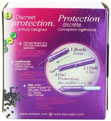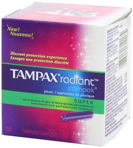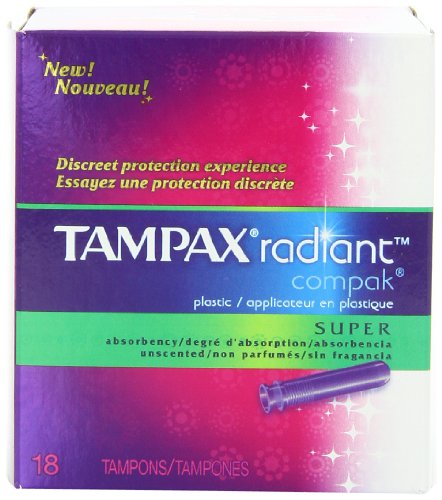 ReleaseDate : 2012-10-01 Studio : Tampax Publisher : Tampax Binding : Health and Beauty Product Description Tampax® Radiant™ Compak® offers full size protection with LeakGuard® that helps stop leaks so you can be protected for up to a maximum of 8 hours, even overnight. Tampax Radiant Compak has a unique LeakGuard® Skirt, a full-sized tampon, and a chic little smooth extendable plastic applicator. When Mother Nature delivers your "monthly gift" - outsmart her with the protection of Tampax Radiant Compak. 0