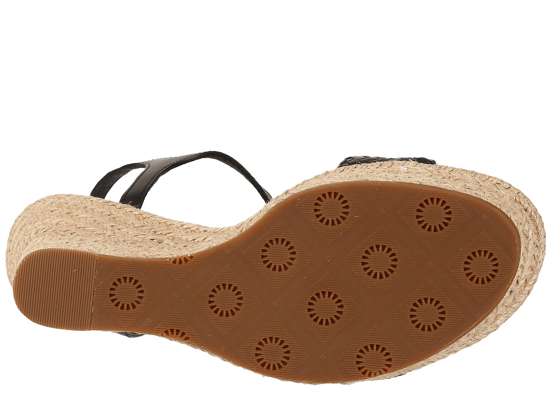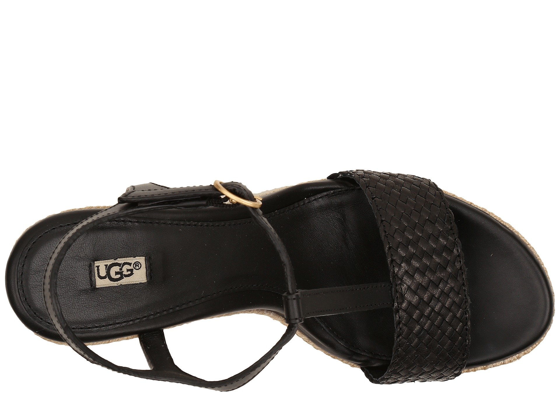 | Product Information SKU: #8807313This item is subject to quantity limitations.Just like a beautiful skyline, you'll steal the eyes of many when you strut your stuff in the Fitchie II wedge sandal by UGG?.Leather upper in a t-strap sandal silhouette.Adjustable buckle closure.PORON? and foam insole with added arch support.Jute-wrapped midsole and wedge.Rubber outsole.Imported.Product measurements were taken using size 7, width B - Medium. Please note that measurements may vary by size.Weight of footwear is based on a single item, not a pair.Measurements: Heel Height: 4 in Weight: 9 oz Platform Height: 1 1?2 in |