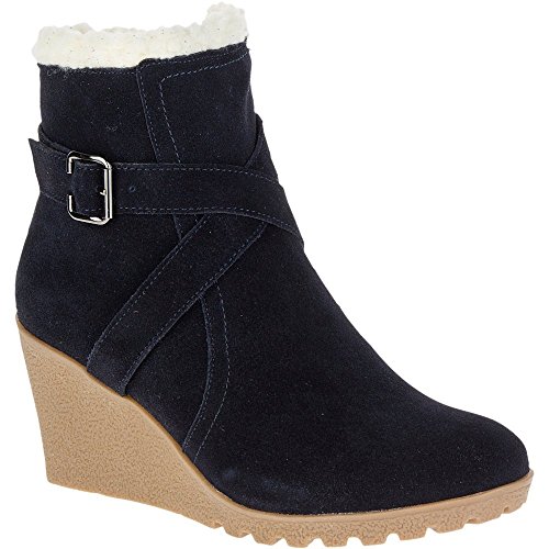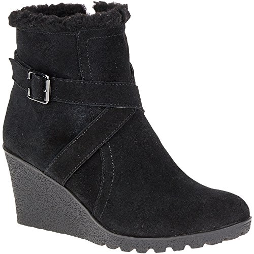 Product DescriptionSuede water resistant ankle bootie on a wedge0