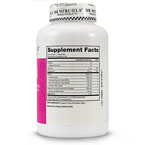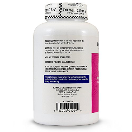 -. Binding : Misc. -. Brand : Dr. Mercola -. Label : Dr. Mercola -. Manufacturer : Dr. Mercola -. ProductGroup : Health and Beauty -. ProductTypeName : HEALTH_PERSONAL_CARE -. Publisher : Dr. Mercola -. Studio : Dr. Mercola -. Title : Dr. Mercola Krill Oil for Women - With Evening Primrose Oil - Omega-3 Bonded To Phospholipids - MSC-Certified - Improved Absorption Over Fish Oil - 270 Licaps Capsules
