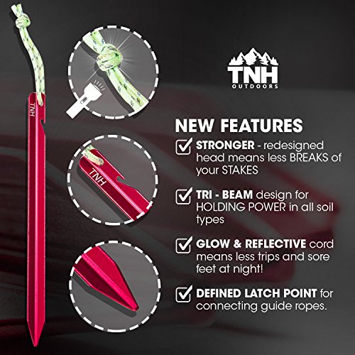 ✔ A BETTER DESIGN: All Tent Stakes are EXACTLY THE SAME, with so many overnight sellers making it a dangerous market place. A real brand is built on innovation and TNH Outdoors has designed STRONG STAKES with a RE DESIGNED head which is ENGINEERED not to BREAK.