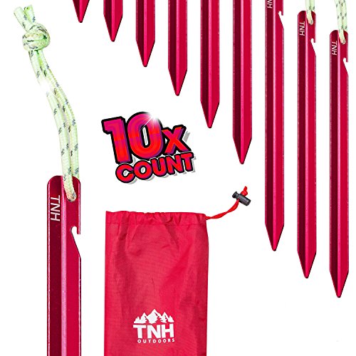 TNH Outdoors 10X Aluminum Tri-Beam Tent Stakes and Bag - Made for Camping - Support A Start Up
