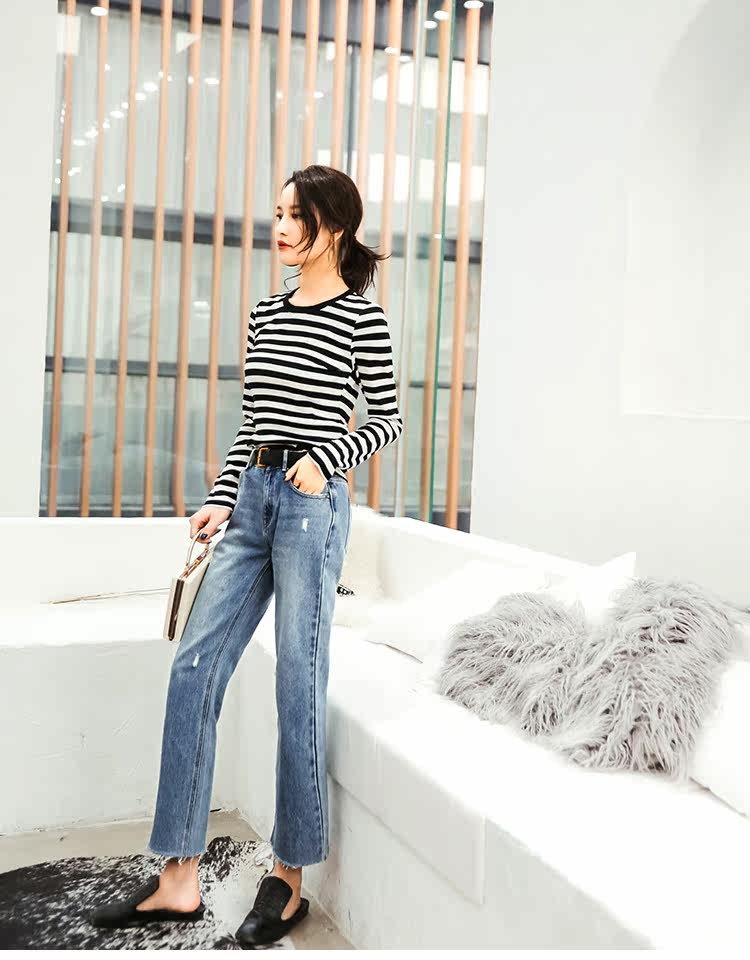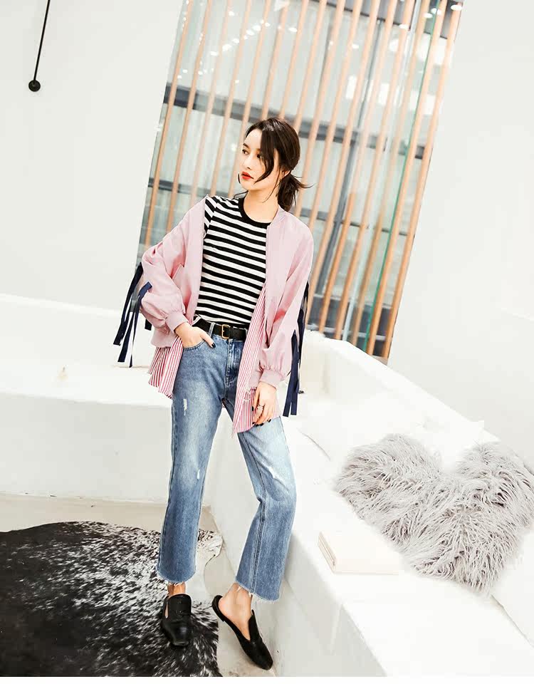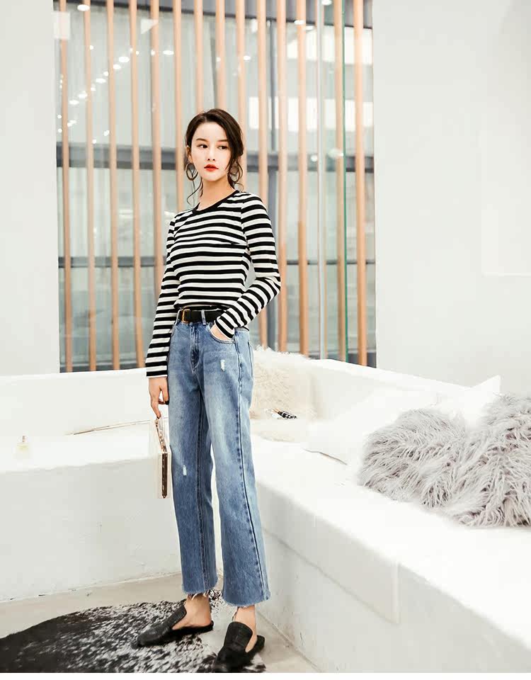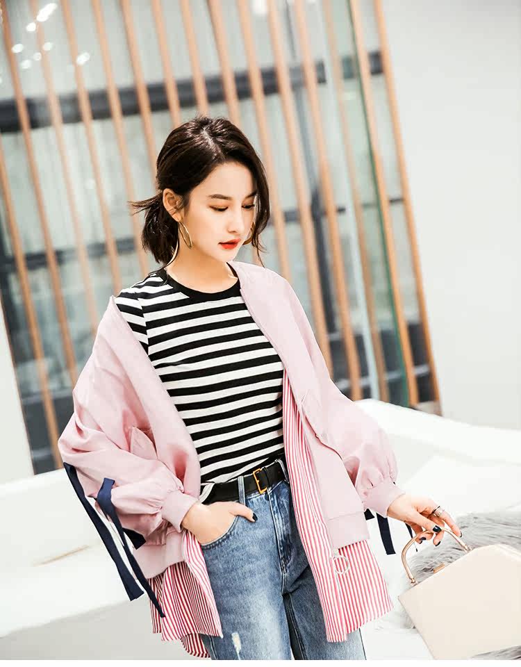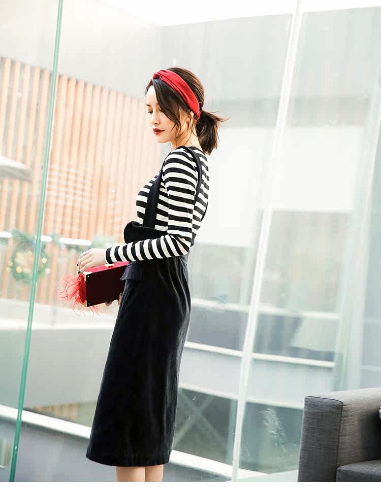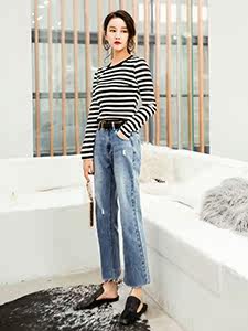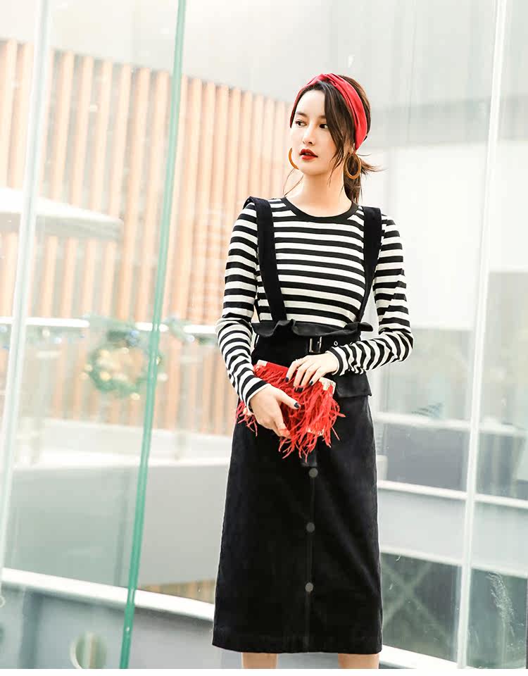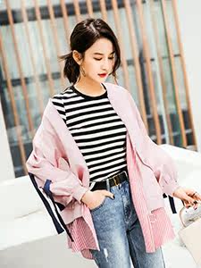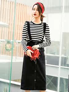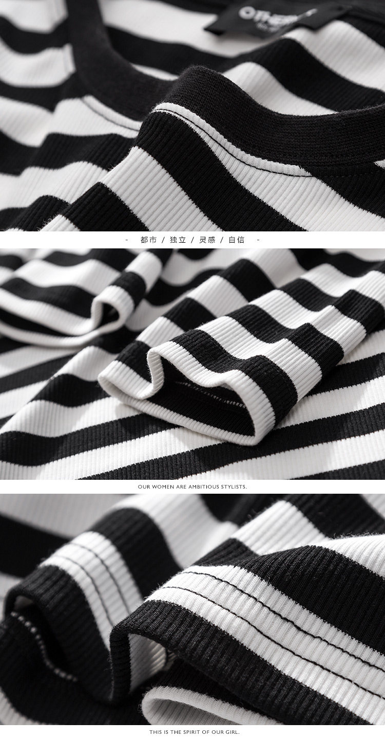| 面 料:46.3%棉 42.8%粘纤 10.9%氨纶颜 色:黑白条 |