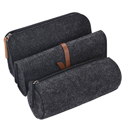 Pencil Case, Coofit 3 Pack Pen Case Pencil Holder Cosmetic Pouch Bag Dark Grey
