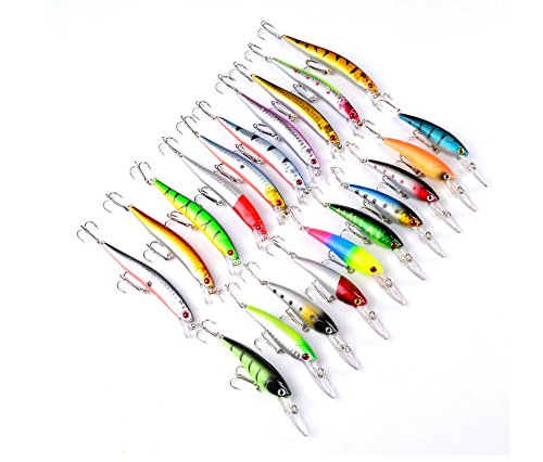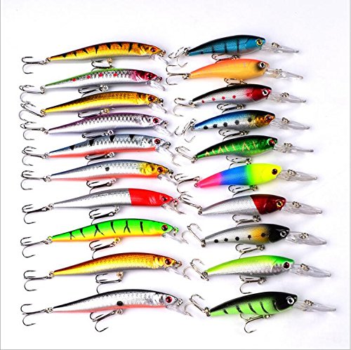 -. Feature : Including: 10 pcs Minnow Lures,10 pcs Long Mouse Minnow Lures. / Minnow Popper Crank Baits-Wonderful Lures Combination Targeting for Widely Fishes In Different Waters / Our fishing lure set is composed of high quality components for superior performance in the water / 3D eyes&Bright colors make it a powerful catching tool. / Perfect for ocean boat fishing,ocean rock fishing,ocean beach fishing,lake,river,reservion,pond and stream!Both for freshwater and saltwater Great for Bass, Perch, Panfish,Perch,Trout,even pike and salmon!This kit is best gift for your friends and families
