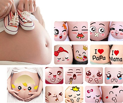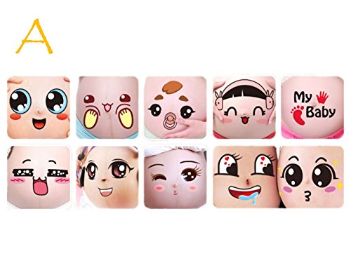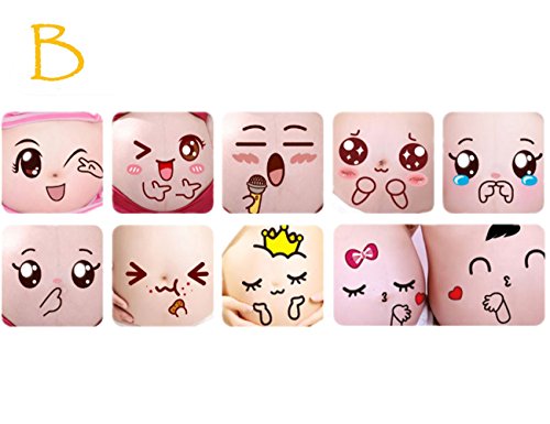 10-Pack Mummy Belly Stickers Facial Expressions Pregnancy Baby Belly Stickers Photo Prop (B)