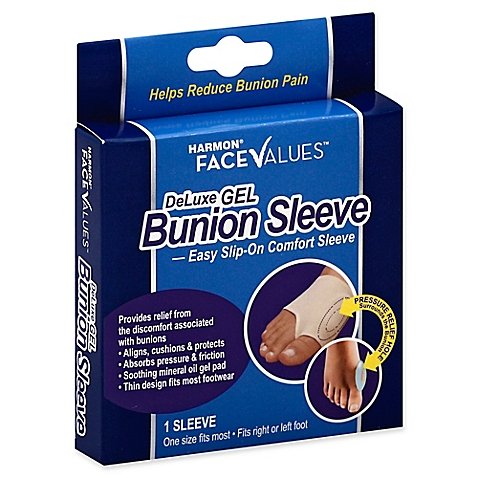 Designed to reduce pressure and pain caused by bunions, Harmon Face Values' Deluxe Gel Bunion Sleeve easily slips on and fits in most footwear so you can enjoy discreet relief all day long. - Get all-day relief from pain and pressure caused by bunions when you wear Harmon Face Values' Deluxe Gel Bunion Sleeve