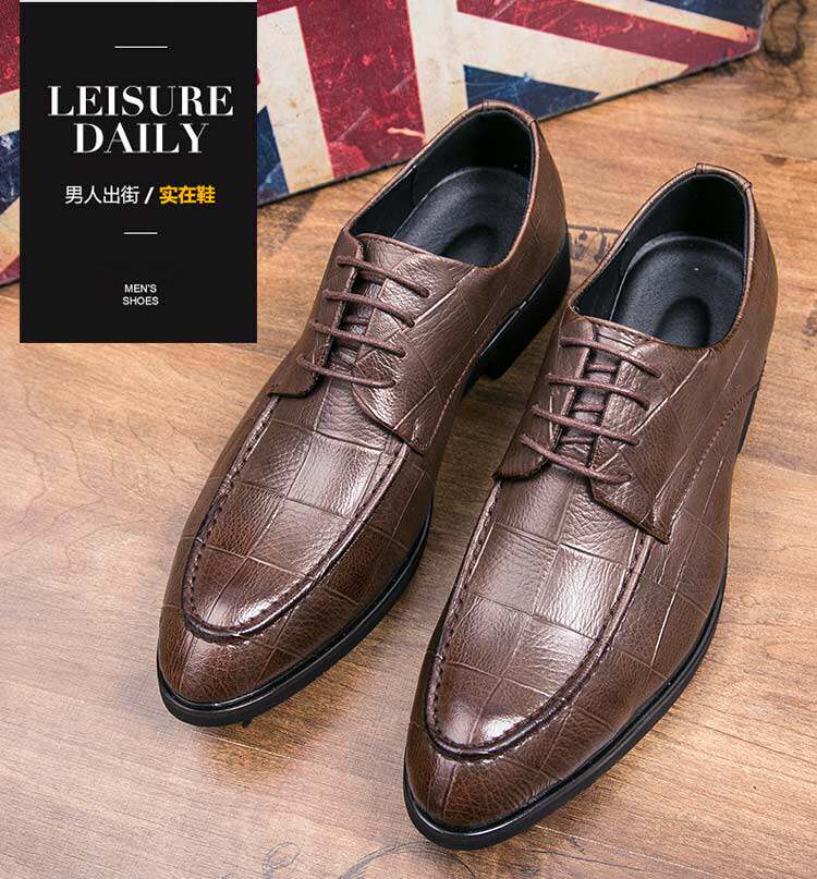 英伦男士尖头皮鞋夜店发型师休闲皮鞋正装商务结婚皮鞋松糕内增高