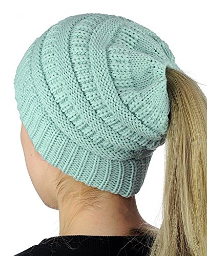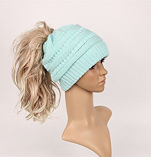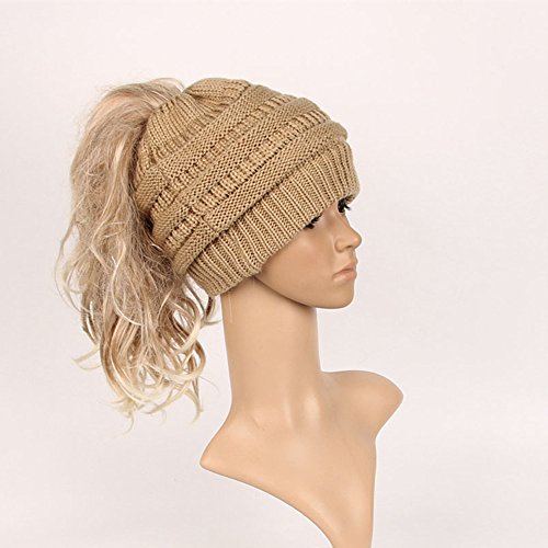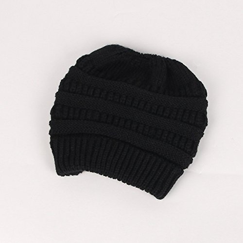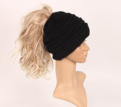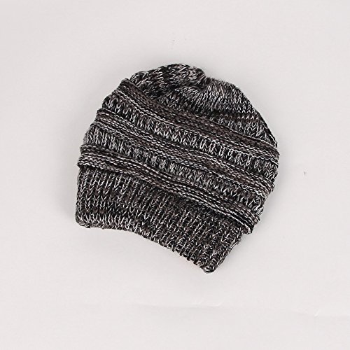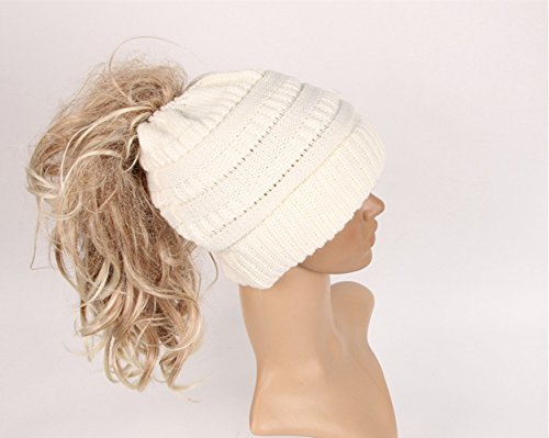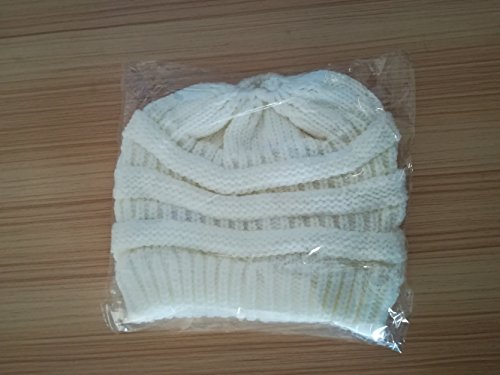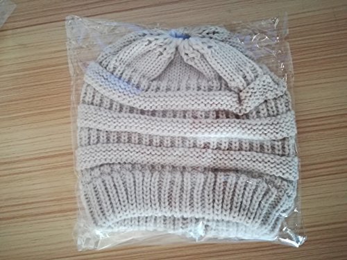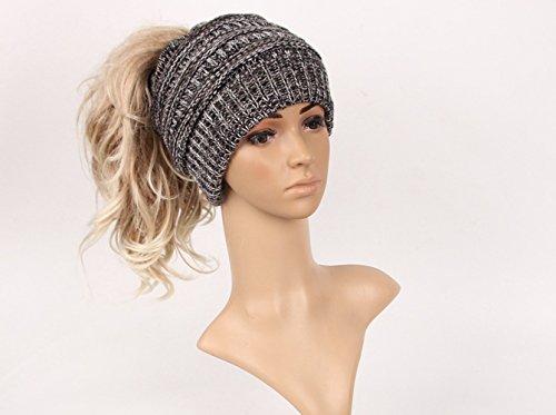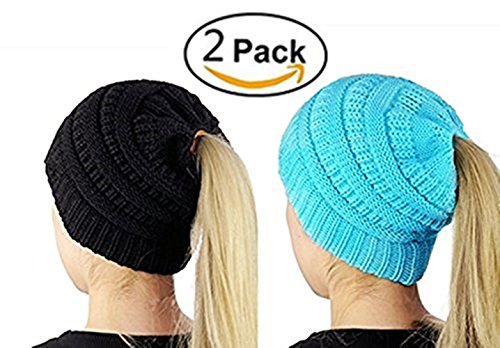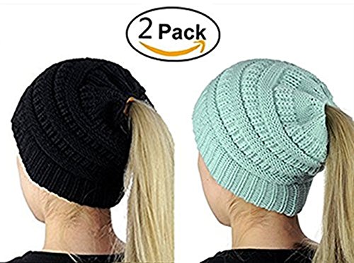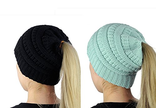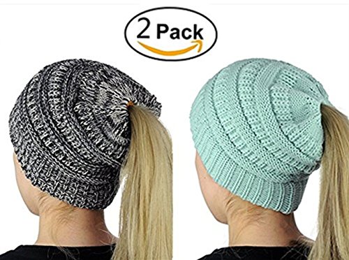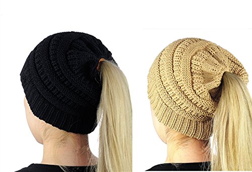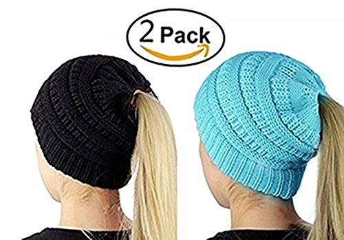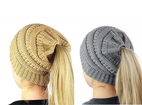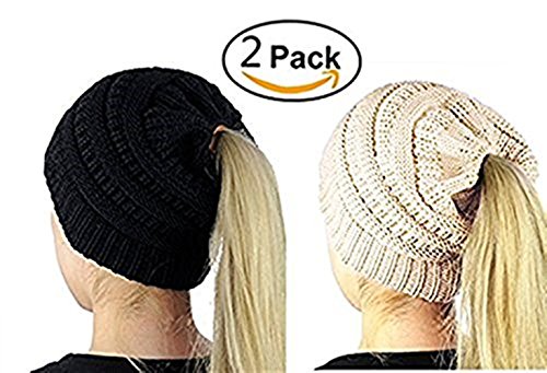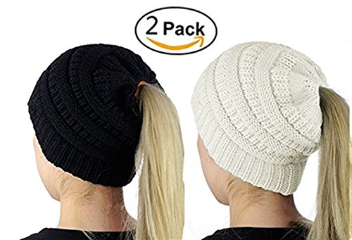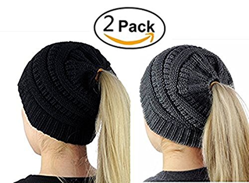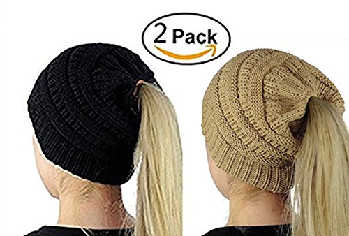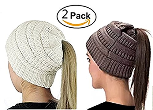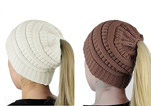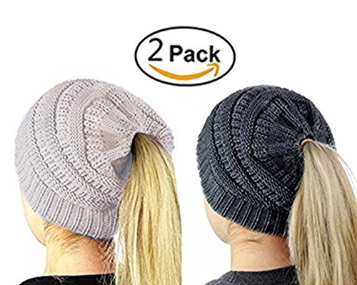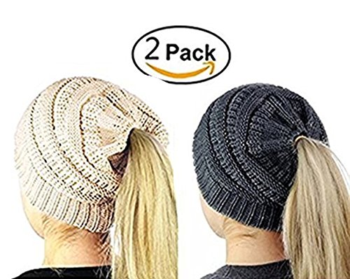 M_Eshop 2 Pack Of Women Beanie Trendy Ponytail Messy Bun Beanie Soft Warm Knitting Solid Ribbed Hat