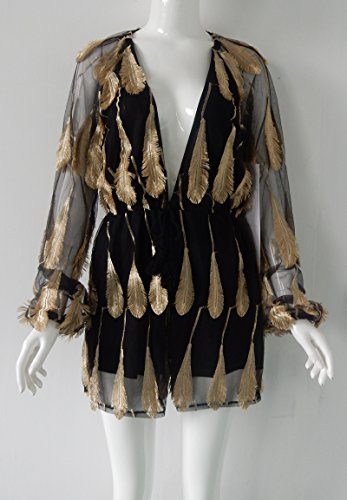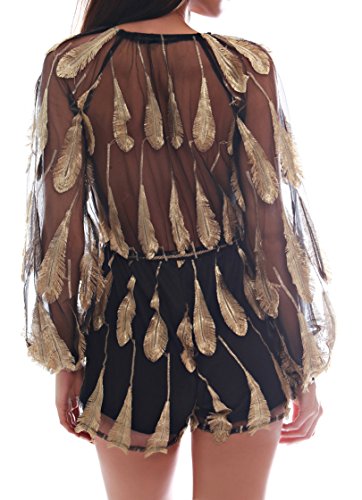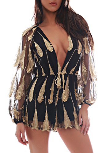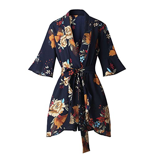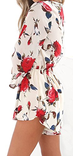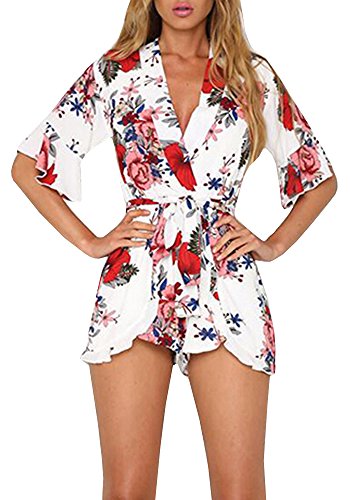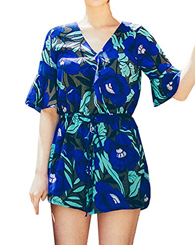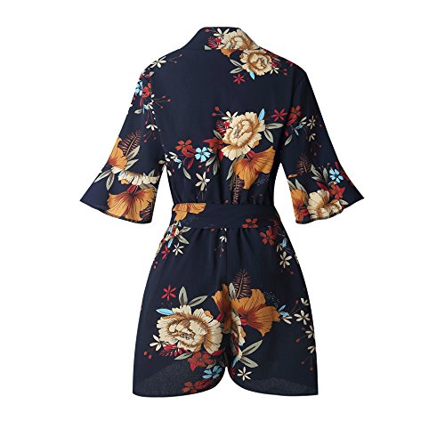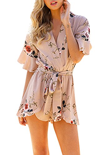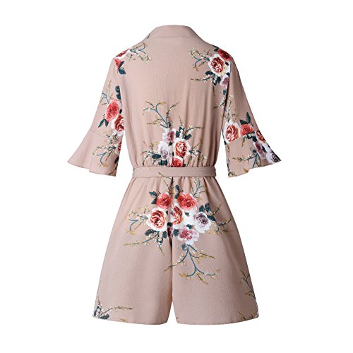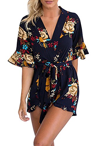 Uncinba Women's Flare Sleeve Floral Faux Wrap Loose Rompers