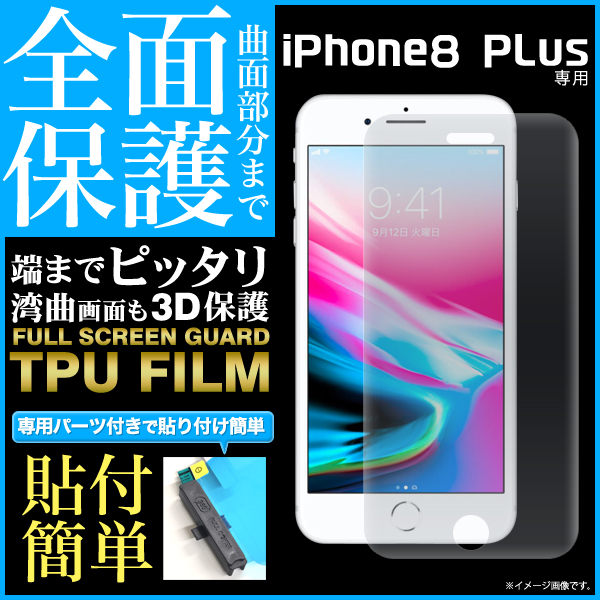 iPhone8 Plusの液晶画面を守る液晶全面保護TPUフィルム。