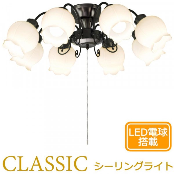 | クラシカルアンティークな王道デザインのシーリングライトです。LED電球を搭載していますが、白熱電球もご使用いただけます。 |
