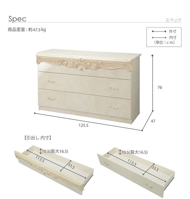 サイズ(cm):幅125.5x奥行47x高さ76cm・約47.5kg