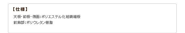 材質:天板・前板・側面-ポリエステル化粧繊維板、前飾部-ポリウレタン樹脂