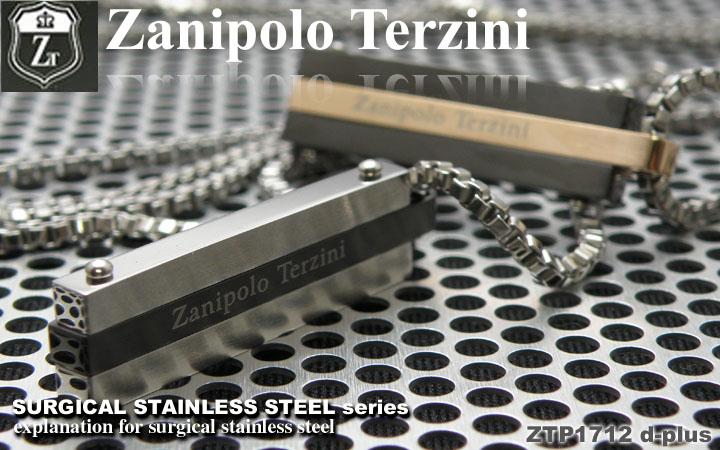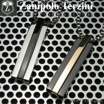 ストレートタイプのネックレストップ。スタイルの中で自己主張し過ぎないデザイン!シルバー×ブラック、ブラック×ローズゴールドの2色展開なのでペアとしてもお使いいただけます☆ ■H=約32mm×W=約9mm IP Color Plating    ■付属品:Zanipolo Terziniオリジナルポーチ ステンレスチェーン
