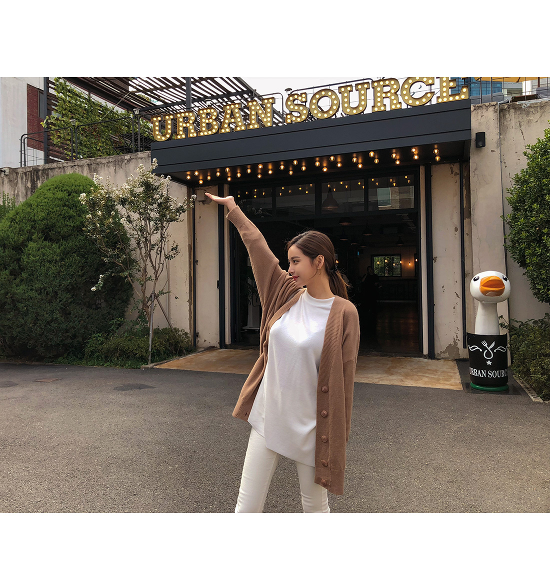 베이직한 디자인으로 다양한 스타일링 연출이 가능한 브이넥 가디건을 소개할게요.