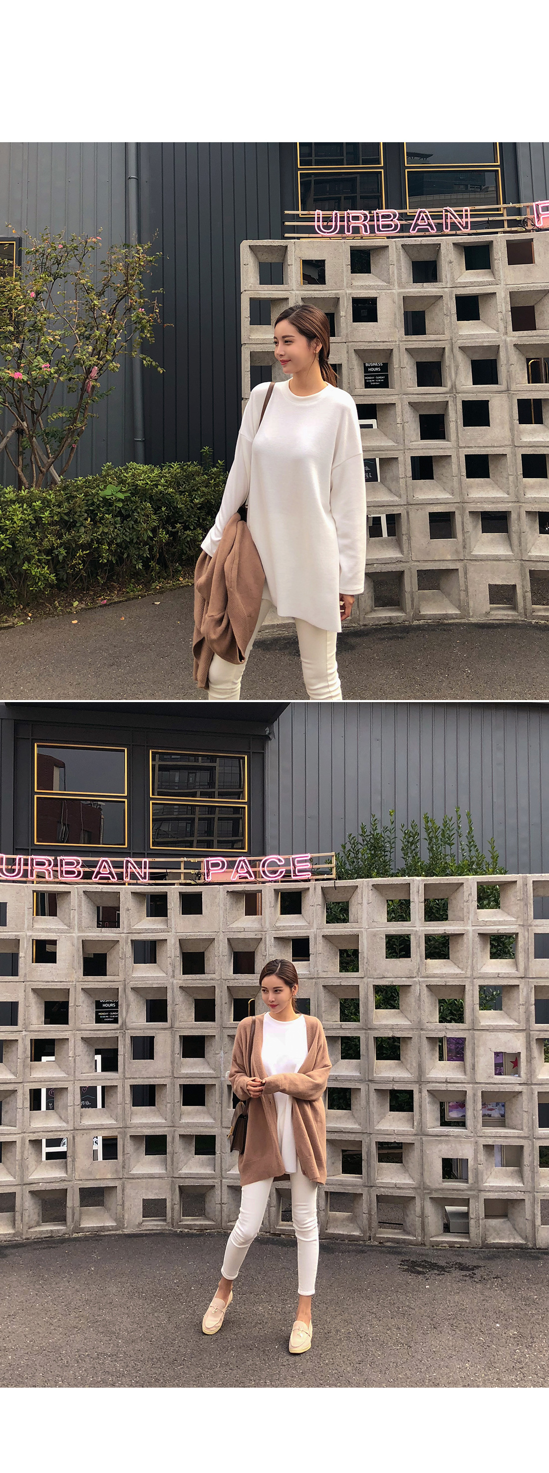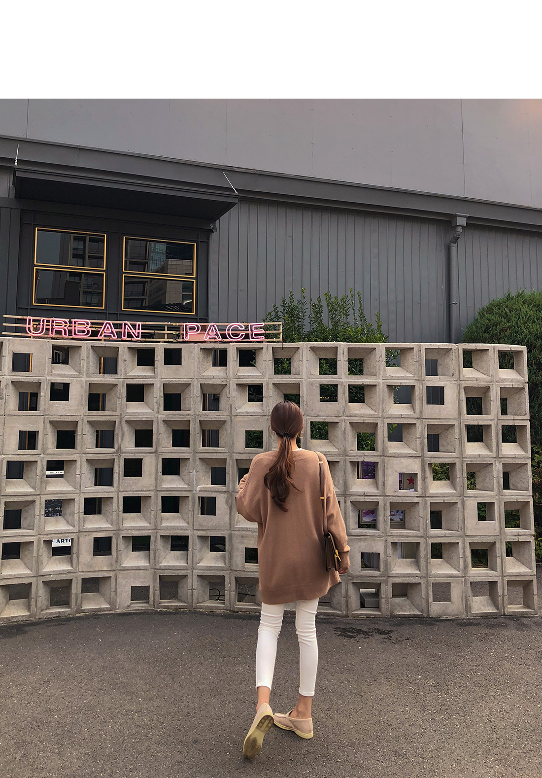 낮게 드롭된 숄더라인에 루즈한 핏감으로