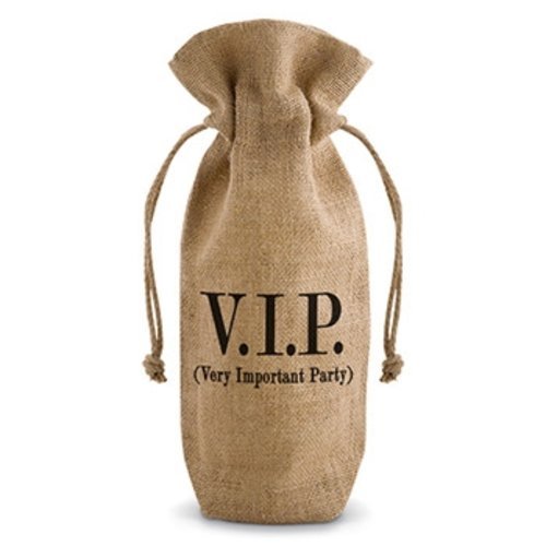 13.5 Inch 'Very Important Party' V.I.P. Drawstring Jute Bottle Bag