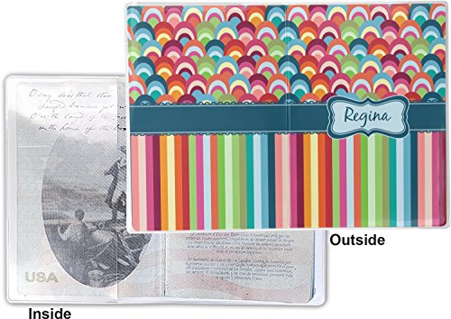 This cover is made of a sturdy clear vinyl with a personalized vinyl insert inside. There is a large and a small pocket on either side to hold the covers of your passport easily and firmly. The passport holder is approximately 5.25" x 7.5", the perfect size to snugly fit your passport. This slim cover is the perfect way to protect your passport without being one more bulky item you have to carry.