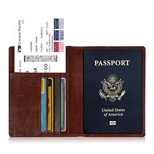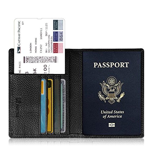 -. Title : Fintie Passport Holder Travel Wallet - Premium Vegan Leather RFID Blocking Case Cover - Securely Holds Passport, Business Cards, Credit Cards, Boarding Passes