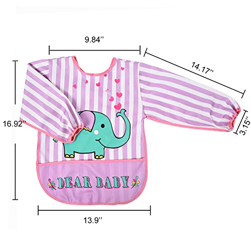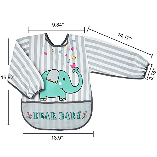 -. Binding : Apparel -. Brand : Mudder -. Department : baby-girls -. Feature : Art and cute smock: cute patterns can stimulate the kids senses; BPA, PVC, fabric softener, phthalates and vinyl free, good for babies with delicate skin / Waterproof and soft material: this sleeved bib is made from light waterproof PUL fabric material, can protect baby clothes in daily life and easy for parents to clean / Size: the shoulder breadth is 9.84 inches, bottom width is 13.9 inches, 14.17 inches in sleeve length, 3.15 inches in cuff diameter and the total length is 16.92 inches, suitable for 1 to 3 years old kids / Wide usage: this baby sleeved bib with a front pocket can be applied for eating, playing, painting, and any other indoor and outdoor activities / Attention: the long sleeve bib is machine washable, do not to wash in too hot water, and not to iron; Hang dry thoroughly before storing -. IsAdultProduct : 0 -. ProductGroup : Toy -. ProductTypeName : ACCESSORY -. Size : 16.92 x 16.92 x 3.15 inches -. Title : Mudder Baby Long Sleeve Bib Kids Waterproof Elephant Bib Art Smock