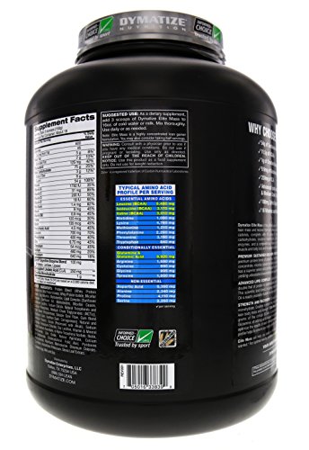 Studio : Dymatize Nutrition Publisher : Dymatize Nutrition Binding : Health and Beauty Product Description Elite Whey Protein is an effectual mean to fuel your muscles with high performance energy. Designed with Whey protein (Concentrate and Isolate) and a proprietary Milk protein matrix containing both Micelular Caseines and Caseinates, this power booster helps you grow strong masculine and also aids quick recovery.Features and Benefits:Helps increase muscle mass. Provides fast recoveryThwarts muscle catabolismAmplifies absorption digestion21 grams of whey protein. Free from sucrose, fat, or aspartameElite Whey Protein has a perfect score on the PDCAAS scale, the most advanced protein determination of quality method available. These perfect scoring proteins have been combined with a flavor and texture profile beyond belief and truly worthy of the Gourmet name. It is available in rich flavors like Vanilla Crme, Milk Chocolate, Strawberries Cream, Cookies Cream and Chocolate Peanut Butter. 0