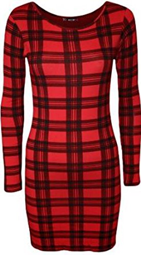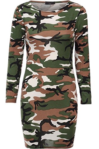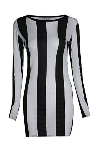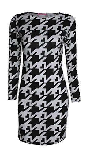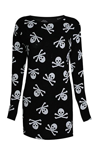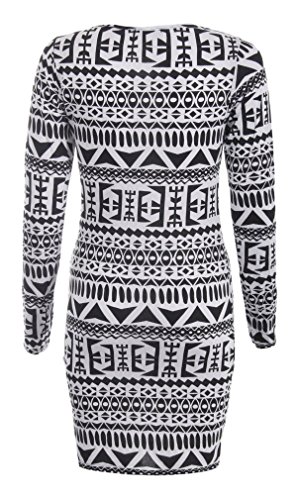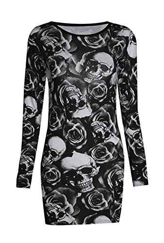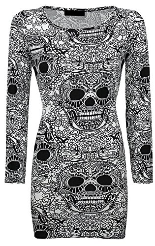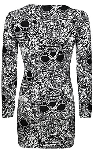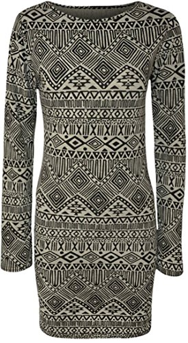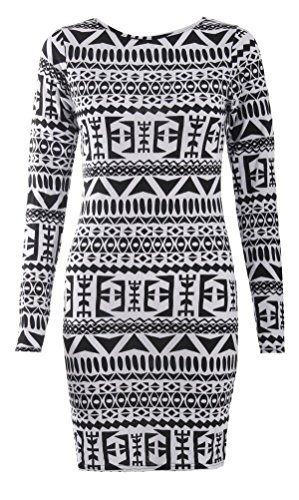 | FashionMark Womens Long Sleeves Skull Zebra Stripe Army Tartan Aztec Printed Bodycon Dress Tunic |