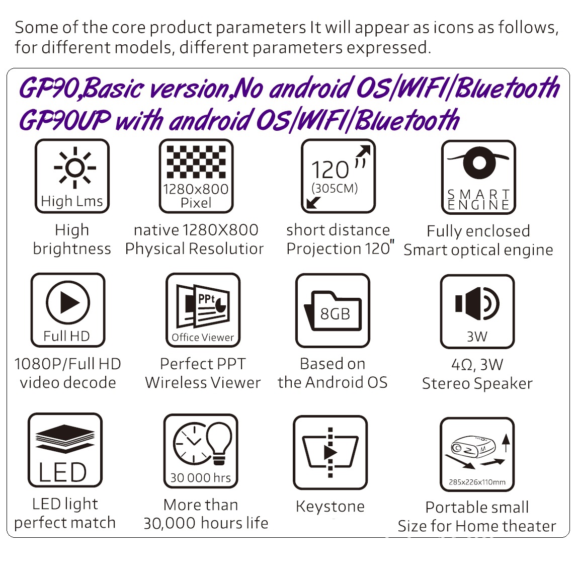 GP90新款家用投影仪LED微型便携办公商务投影机支持高清1080p投影