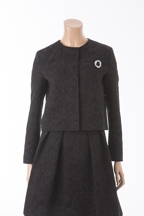 트렌디하게 보이는 크롭기장의 자카드 쟈켓아이템입니다. 볼륨감 있는 스커트와 로맨틱하게 또는 데님과 매치하여 캐주얼하게 다양한 연출이 가능합니다. 장식브로치는 첫단추 위치에 부착해서 장식단추처럼 연출해주세요:)