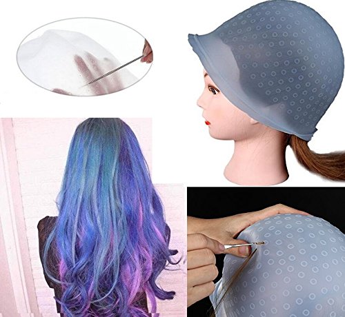 Highlighting Cap With Hook Hair Coloring Dye Tinting Streaking Cap Reusable Silicone Salon Cap ...