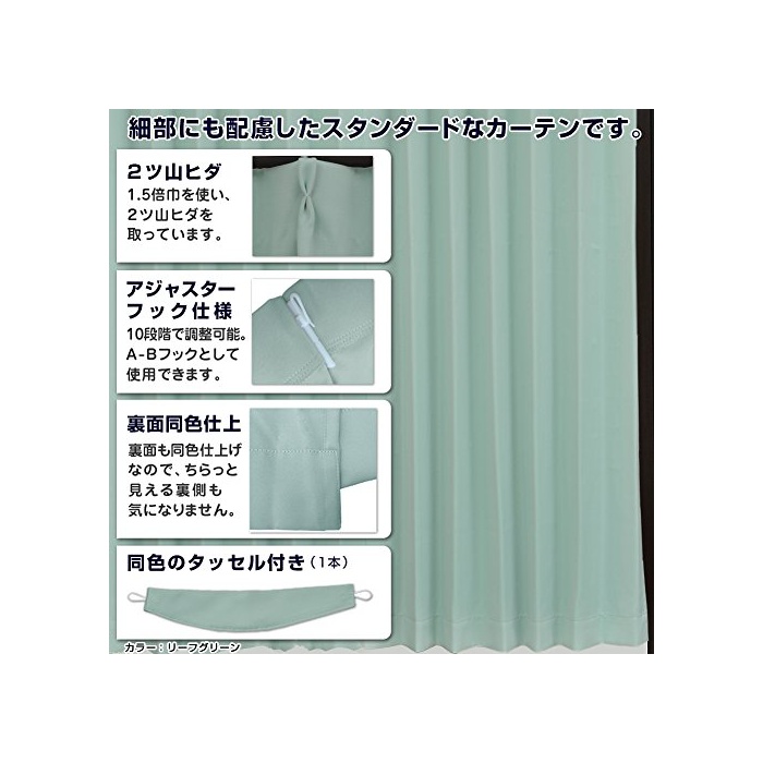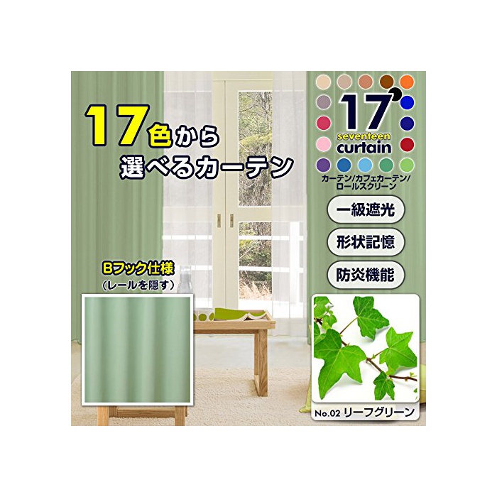 원본상품명: 1級遮光カ?テン 防炎 形?記憶 Bフック 幅100×丈230cm 2枚 リ?フグリ?ン