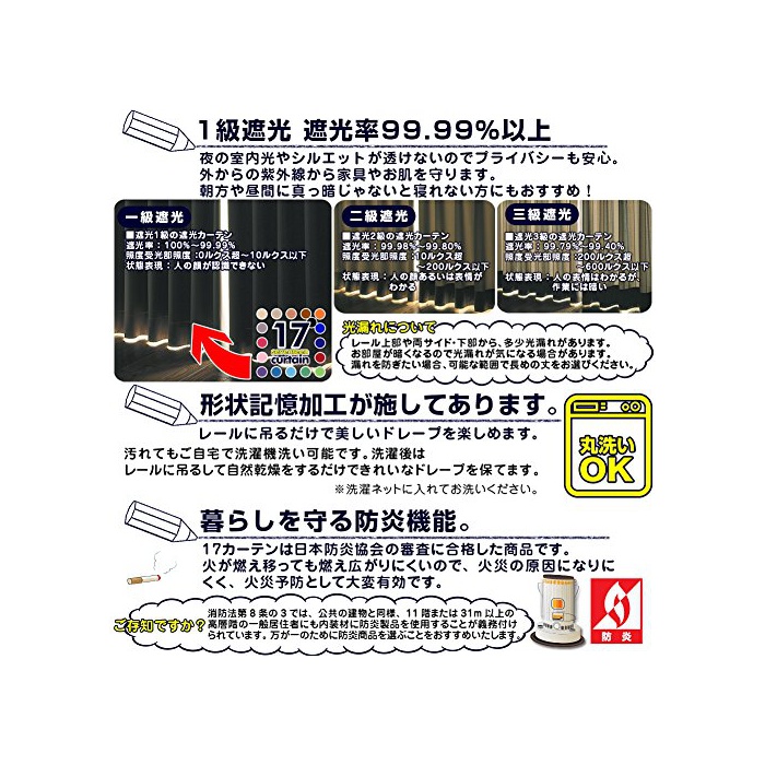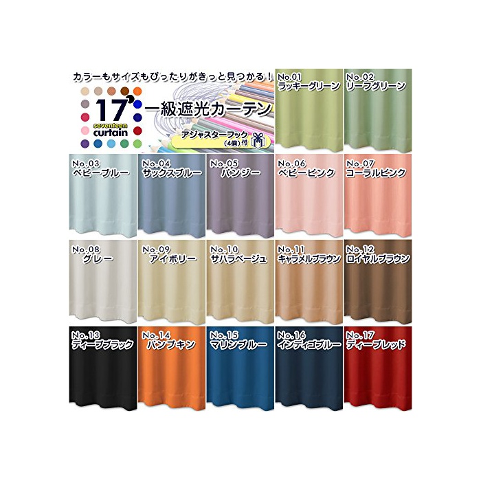 「세븐틴 커튼」란? 17색에,폭3타입(100cm 150cm 200cm) 장18사이즈(90cm~240cm)를 갖춰 있는 시리즈.