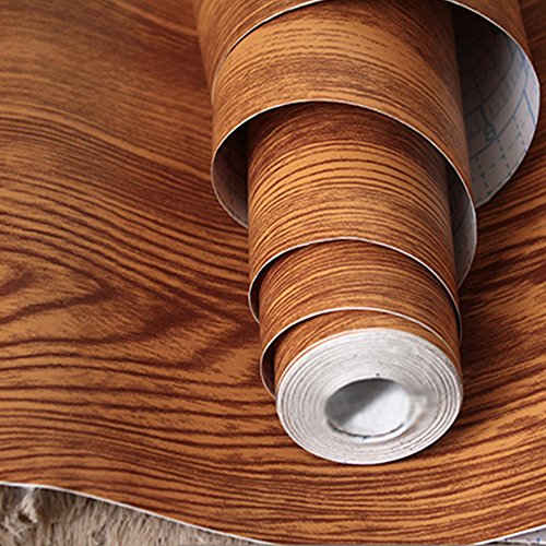 -. Title : SimpleLife4U Modern Brown Wood Grain Contact Paper Self-Adhesive Shelf Liner End Table Door Sticker 17.7 Inch by 9.8 Feet