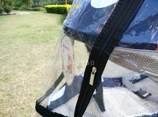 环保材料童车防雨罩 婴儿手推车雨篷 推车雨遮 拉链开前面常识说明:PVC材质本身有味,清洗之后微乎其微。郑重承诺,天地良心,我们用的环保料,妈妈放心,对宝宝无任何危害。 目前淘宝上有很多商家仿造我们的产品,PVC的材质有很多,我们用的是超透加厚的防寒料,天气变冷了,也不会遇冷变脆,质地还是一样的柔软,一分钱一分货,我们做的是品质和良心!