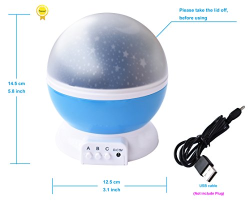 [USB or Batteries Powered]: This kids space projector can be powered by 4 AAA batteries(not included) or miscro USB cable.Please noted that night light projector can't store power by itself.