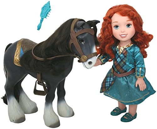 -. Feature : Merida and her noble horse, angus / Dressed in a shimmering gown / Long flowing hair and moving arms and legs