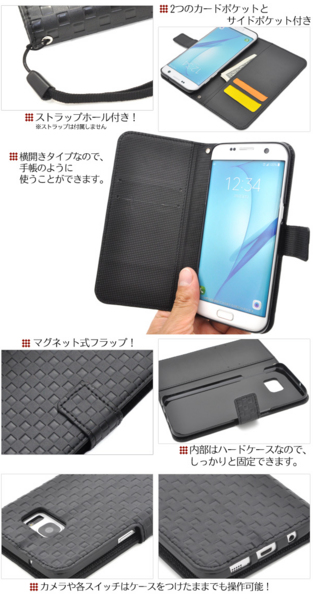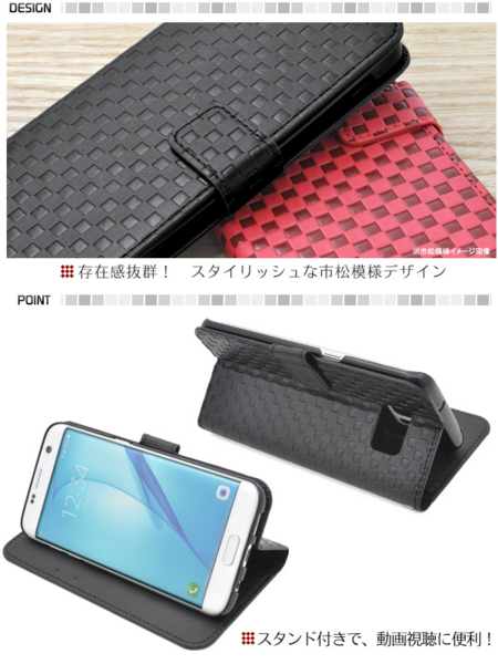 市松模様レザーデザインのGalaxy S7 edge SC-02H/SCV33用スタンドケースポーチ。