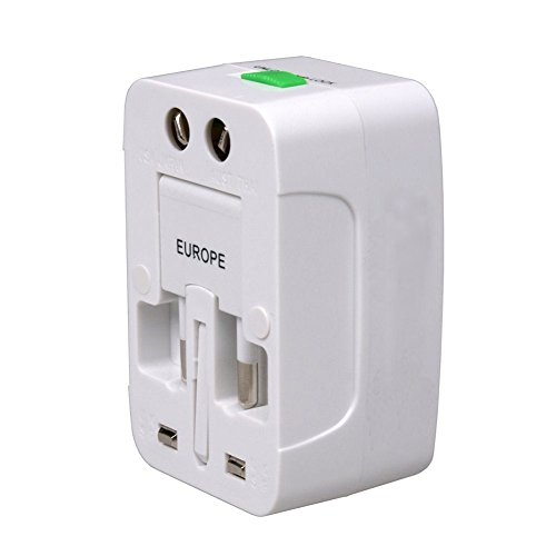 -. Feature : Universal conversion plug adapter,Cover more than 150 Countries with US/EU/UK/AU plugs. / Built in surge protector - accommodates grounded and ungrounded plugs. / Volts:120-240 V,Current rating:6-13A. / LED charging indicator. / Color: white