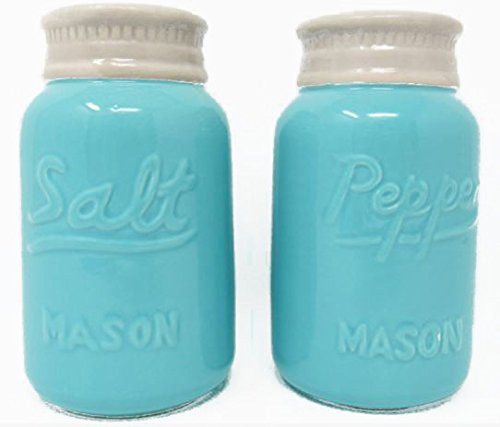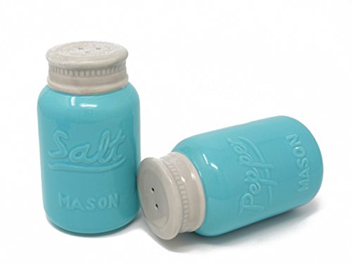 Mason Jar Salt and Pepper Shakers Vintage (Large 8 oz) - Set of 2, Premium, Quality Retro, Modern, Shabby Chic - Unique Rustic Home Décor! Cute & Chic Kitchen Accessories Sturdy Ceramic in Blue.