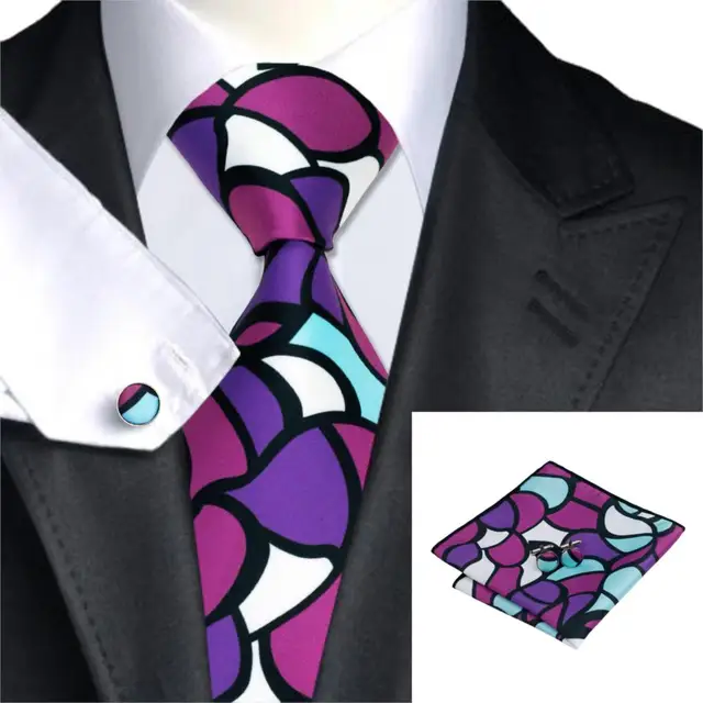 | [해외]SN-1273 새로운 도착 남성 넥타이 패션 보라색 넥타이 손수건 커프스 세트 새로운 하이-넥타이 디자인 브랜드 Gravatas 망 넥타이 |