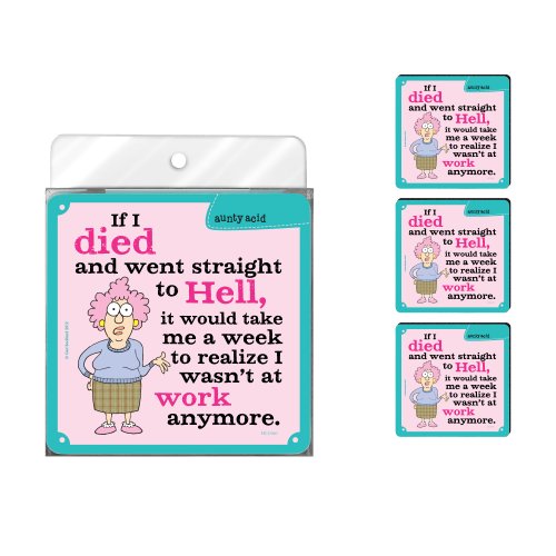 Tree-Free Greetings NC37907 Aunty Acid 4-Pack Artful Coaster Set, Straight to Hell