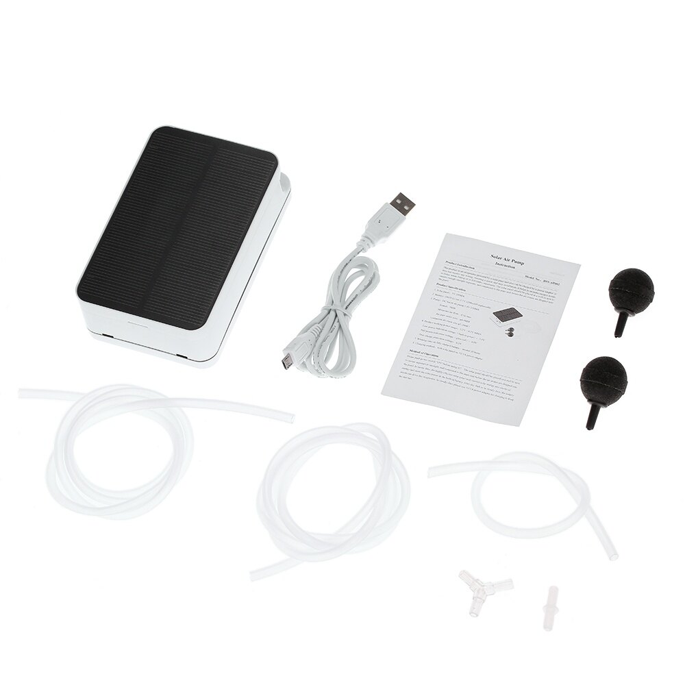 This product is an oxygenator powered by a solar panel and also can be charged by a power adapter with the USB charging cable. It does not require any wire connection, ensuring a quick and easy installation. It helps to increase oxygen levels to fishes when fishing or in fish tanks, aquariums.