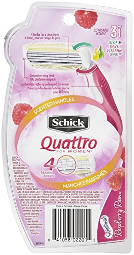 Schick Quattro Quattro for Women Disposable Razor with Scented Handles, Raspberry Rain - 3 ct - 2 pk