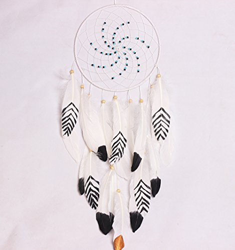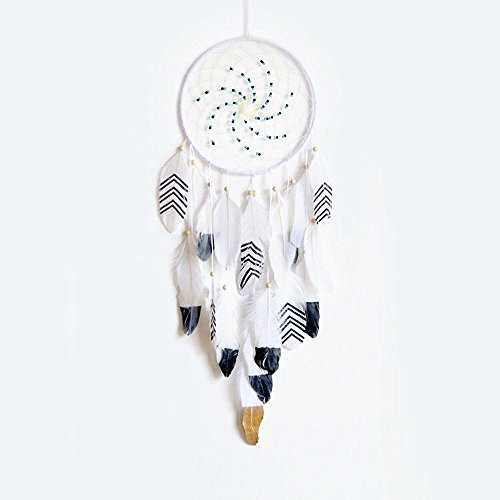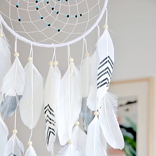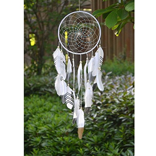 Dremisland Handmade Beaded Dream Catcher Feather Hanging Home Decor Gift (white-o2)