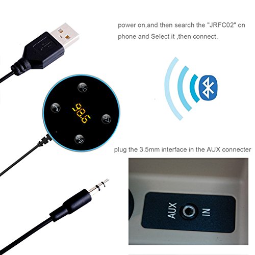 - If your car has AUX interface, you can ignore the FM frequency display window, after power on, and insert the 3.5mm audio cable to car AUX, pair it with your mobile phone, then it can be used as a Bluetooth receiver;